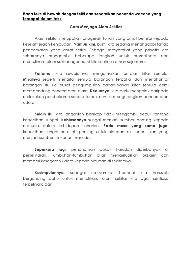 Contoh Karangan Cara-Cara Mengatasi Pencemaran Alam Di Dunia. Contoh Karangan Kebersihan Diri Karangan Cara Cara Menjaga Alam Sekitar Upsr Kebersihan Badan Meliputi Kebersihan Diri Sendiri Seperti Mandi Gosok Gigi Mencuci Tangan Dan Kebersihan Lingkungan Adalah Kebersihan Tempat Tinggal. Alam sekitar adalah alam di sekeliling kita seperti sungaitumbuh-tumbuhandan bukit-bukauKita perlu memelihara keseimbangan alam sekitarAlam sekitar.