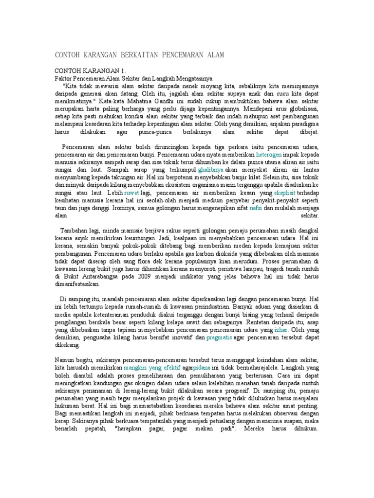 Karangan Pencemaran Alam Sekitar Pdf